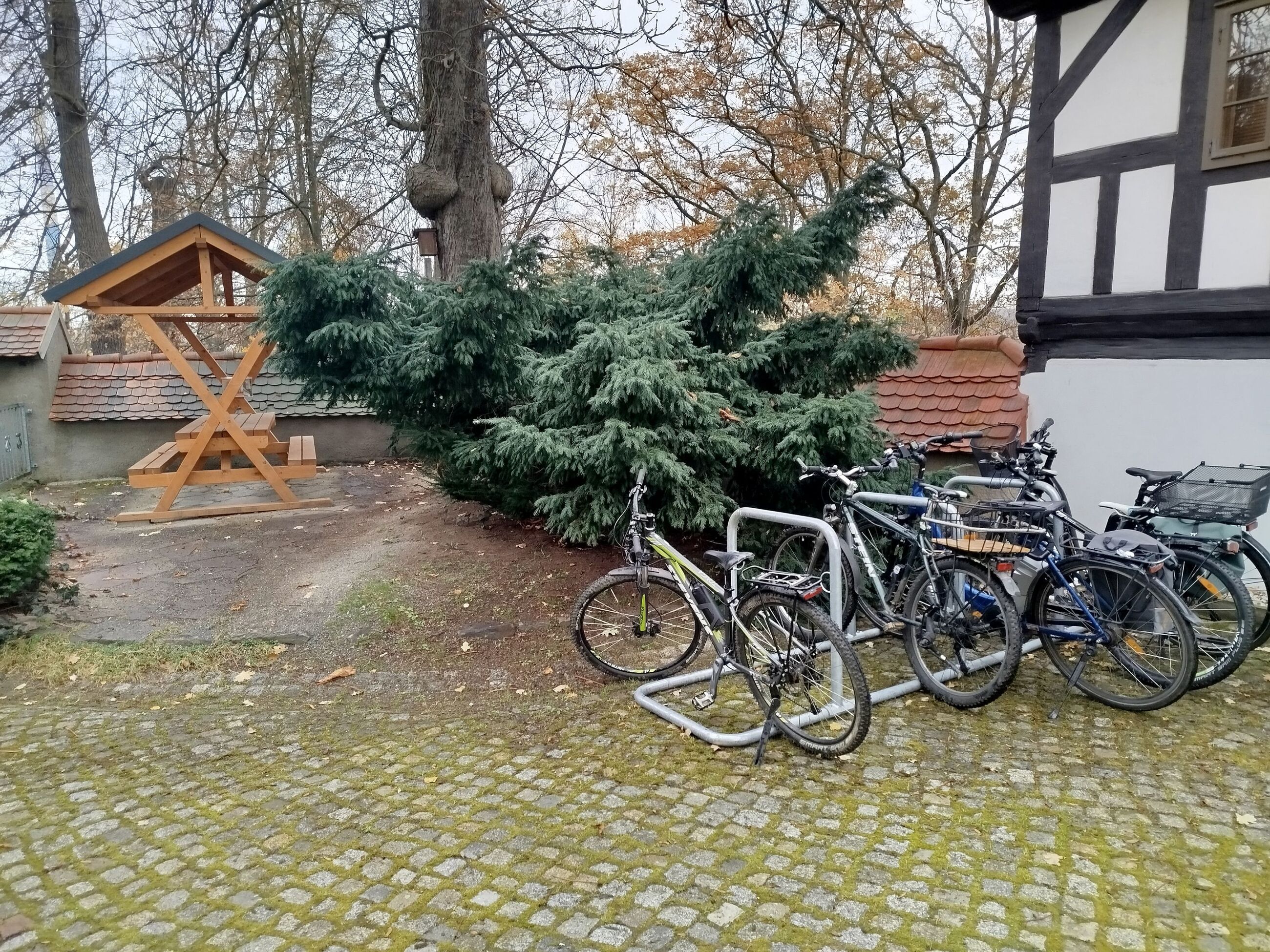 Zur sichereren Unterbringung von Fahrrädern wurden nun 2 Fahrradständer installiert und damit ein klar strukturierter Abstellbereich geschaffen. Durch die Umsetzung dieses Vorhabens konnte die Aufenthaltsqualität verbessert werden, da die mitgebrachten Fahrräder geordnet, platzsparend und sicher angeschlossen werden können.